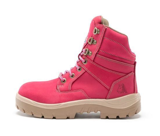 Our Pink and Purple Southern Cross® Ladies safety boots are crafted from premium, Water-Resistant Nubuck Leather. These boots are extra special as $10 from every pair sold is donated to support women with breast cancer.  Steel Blue Ladies safety boots are designed just for women and include a shorter ankle length and smaller instep.  A popular choice for Mining, Construction and Road Workers, these ankle boots offer a padded, low-cut scalloped collar for ease of movement. Other features include a Nitrile Outsole that is heat resistant to 300°C, 200 joule safety Steel Toe Cap and Anti-Static properties.  All Steel Blue boots include our patented Trisole® Comfort Technology which has been specially designed to cushion your feet, knees, hips and lower back from day-to-day fatigue.
